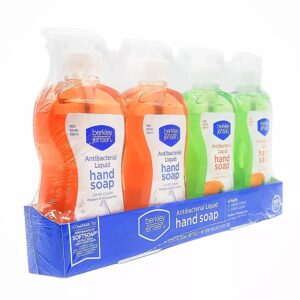 Berkley Jensen Antibacterial Liquid Hand Soap gently cleanses while removing bacteria for a clean feel. This four pack contains two Crisp Clean scented soaps, and two Fresh Citrus scented soaps. These soaps are the perfect addition to any kitchen or bathroom, leaving hands feeling clean and soft. This product is manufactured in a LEED Certified facility.