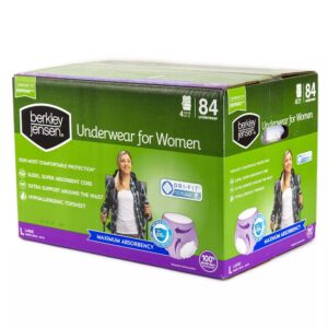 Includes 84 incontinence size large underwear for women