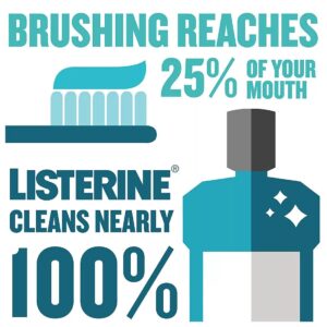 Protect your mouth from germs with Cool Mint Listerine Antiseptic Mouthwash. Accepted by the American Dental Association, this mouthwash is clinically shown to reduce 52% more plaque and 21% more gingivitis than brushing and flossing alone. Adding a 30-second rinse to your morning and evening routines is all it takes to get 24-hour protection against germs that cause bad breath, plaque and gingivitis. Cool Mint Listerine Antiseptic Mouthwash leaves your mouth feeling intensely clean.