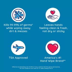 Kills 99.99% of germs* from hands while wiping away dirt and messes
